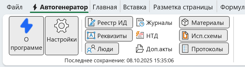 - ⬆️Кнопки действий вынесены на отдельную вкладку «Автогенератор» на ленте.