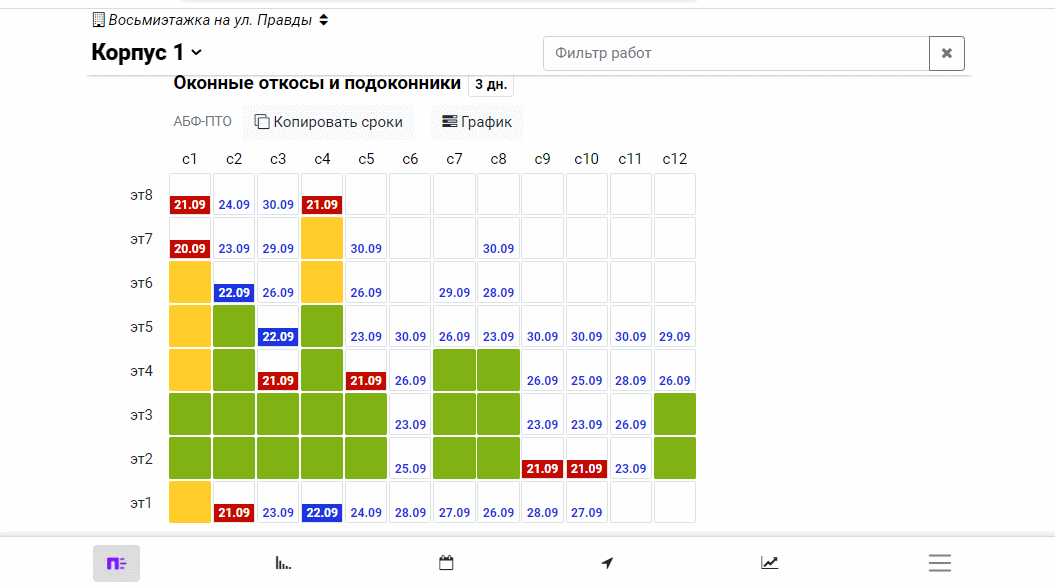 В нём в виде линейного графика Гантта отображается выбранная работа на всех этажах этой секции.